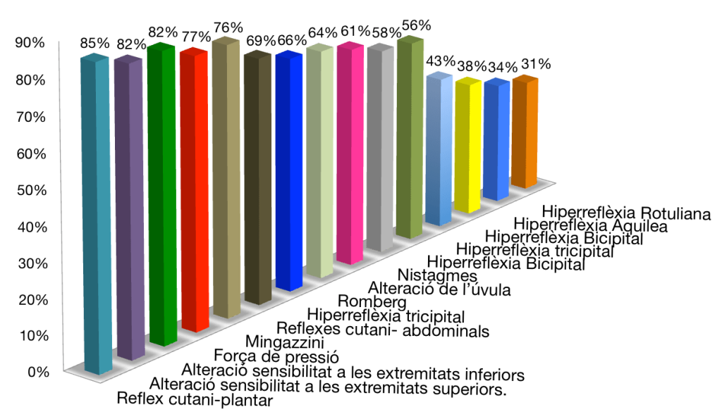 Els símptomes i signes que afecten principalment als nostres pacients amb Arnold Chiari I, Siringomièlia i Escoliosi idiopàtiques, es poden observar en els gràfics I i II, que reflecteixen el quadre clínic d’una Mostra de 400 malalts.
