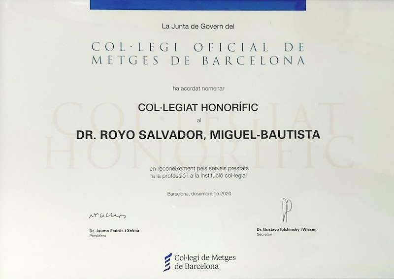 Award for Dr Royo-Salvador’s career by Distinguished Academy of Science and Health Ramón y Cajal