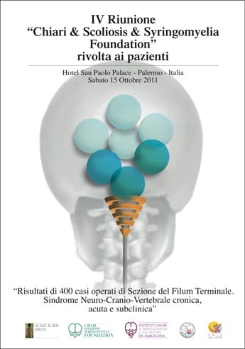 La “Chiari & Scoliosis & Syringomyelia Foundation” è stata invitata dall’ AI.SAC.SI.SCO (Associazione Italiana Sindrome di Arnold Chiari – Siringomielia – Scoliosi Filum Tomizzati onlus) a realizzare la IV riunione di pazienti a Palermo, in Sicilia (Italia), nel mese d’ottobre di quest’anno, con la collaborazione e l’aiuto dell’”Institut Chiari & Siringomielia & Escoliosis de Barcelona” e di altre entità e professionisti.