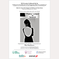 바르셀로나 키아리 & 척수공동증 & 척추측만증 연구소(ICSEB)에서 키아리 & 척추측만증 & 척수공동증 재단(CSSf)이 재단 설립 10주년을 축하하기 위해 바르셀로나 의사 협회(Col.legi Oficial de Metges de Barcelona)ICSEB 공동으로 자선 예술 행사를 주관함을 알립니다. 행사는 2018년 10월 26일 금요일 오후 6시 30분에 Sala de Actos del Colegio de Médicos de Barcelona에서 열릴 예정입니다.