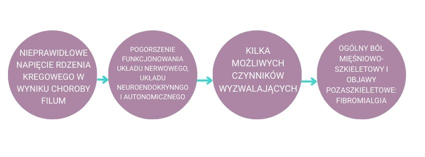 Mechanizmy wiążąceChorobę Filum z tymi zespołami, będące obecnie przedmiotem badań, mogą mieć związek z nieprawidłowym napięciem Filum Terminale, zmianami i postępującym pogorszeniem, jakie może to powodować w układzie nerwowym, układzie neuroendokrynnym i układzie autonomicznym (ryc. 1 i 2).